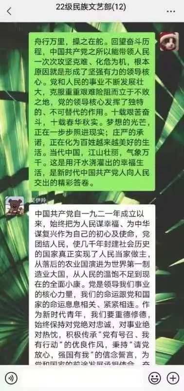 民族文艺部成员认真学习了解了党取得瞩目成就的伟大历程,以及要全面把握习近平新时代中国特色社会主义思想的世界观、方法论和贯穿其中的立场观点方法,深刻领会“两个结合”、“六个坚持”,正确认识把握习近平新时代中国特色社会主义思想的精神实质。
