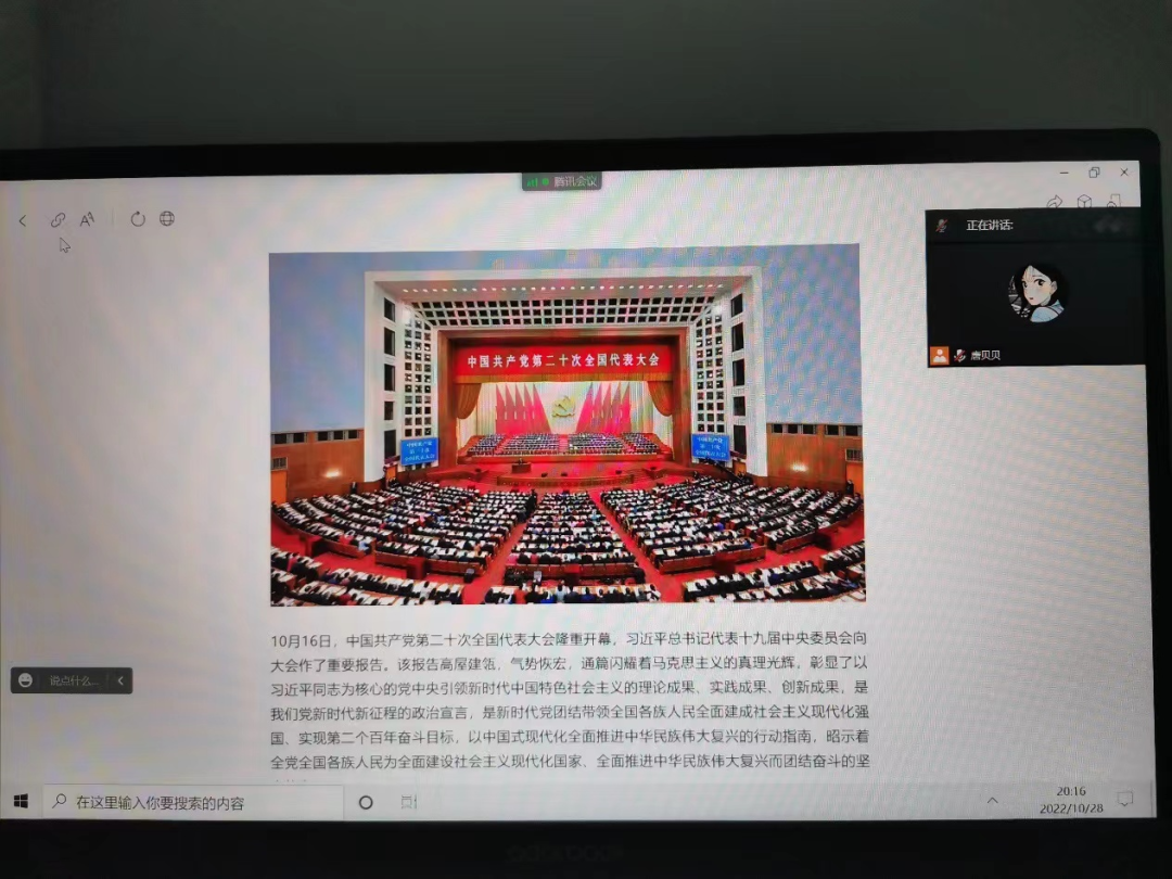10月28日,9428cn太阳集团辩论队2021、2022级全体成员参与了本次学习,由辩论队2021级领队唐贝贝主持。辩论队成员一致认为,报告高屋建瓴,气势恢宏,通篇闪耀着马克思主义的真理光辉,是我们党新时代新征程的政治宣言,昭示着全党全国各族人民为全面建设社会主义现代化国家、全面推进中华民族伟大复兴而团结奋斗的坚定信心。