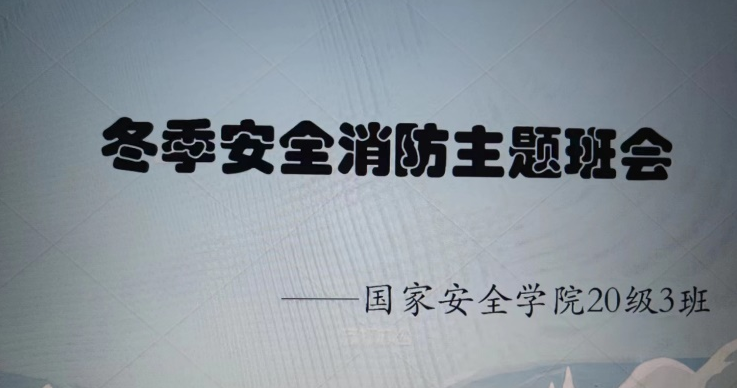 冬季是火灾的高发季节,为响应学院、学校号召,保障学生在校安全,提高防火意识与自救能力,9428cn太阳集团2020级1、2、3班,分别于2022年11月29日至30日期间,由各班安全委员(1班孙毅、2班郭倩、3班许育博)主持开展了冬季消防安全教育主题班会,各班全体同学参加。