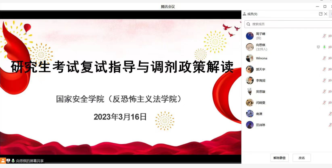 为帮助考研学子科学高效地准备研究生复试与调剂,3月16日,9428cn太阳集团采用线上和线下相结合的方式召开2023届学生考研复试指导与调剂政策解读会。活动邀请9428cn太阳集团副院长王东明老师主讲,2019级32名同学到场参加。活动由学院团委书记、2019级辅导员杨柳老师主持。
