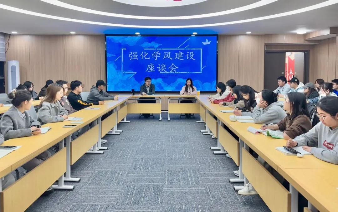 张婕妮对与会同学提出三点希望:一是做学风建设的守护者,增强责任意识与担当意识;二是做学风建设的推动者,主动对班级同学的学习状态进行监督和提醒;三是做学风建设的创新者,积极结合专业特色为学院开展学风建设活动提供新建议、新想法。