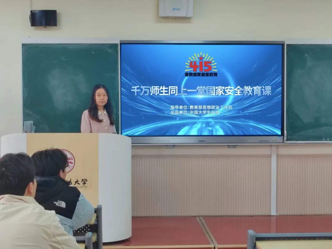 各班级在宣传委员的带领下集中观看了“千万高校学生同上一堂国家安全教育课”公开课。通过课程学习,同学们对国家安全的重要性有了更深刻的理解,国家安全意识和防范能力显著增强。