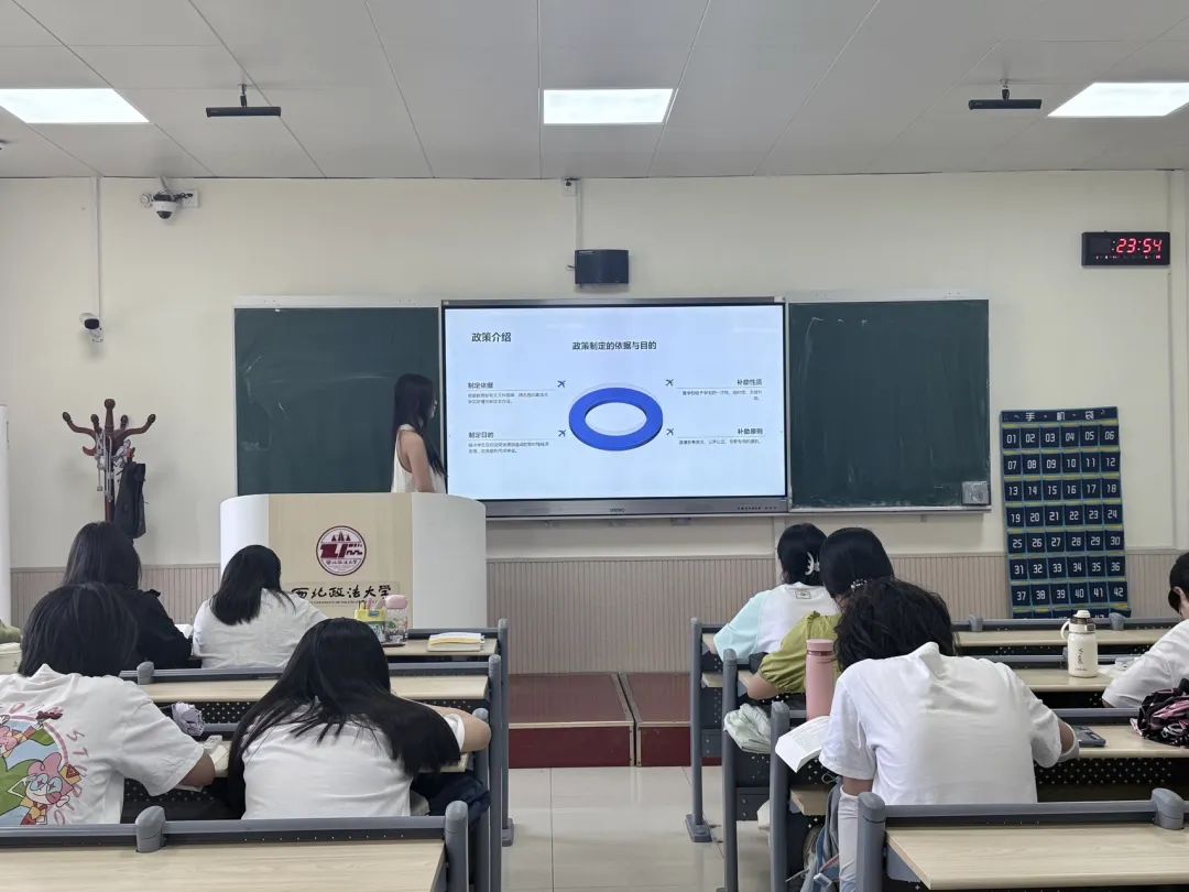 会上,胡慧茹同学带领同学们学习了《太阳集团国家助学金管理办法》,从助学金政策概述、补助对象与标准、申请流程三个方面让同学们明晰学校资助政策,同时她强调了学校资助政策为家庭经济困难学子提供的激励与关怀,以及在学业中为学生保驾护航的重要意义;最后,通过介绍多名受助学生的励志故事,激励同学们奋发进取。