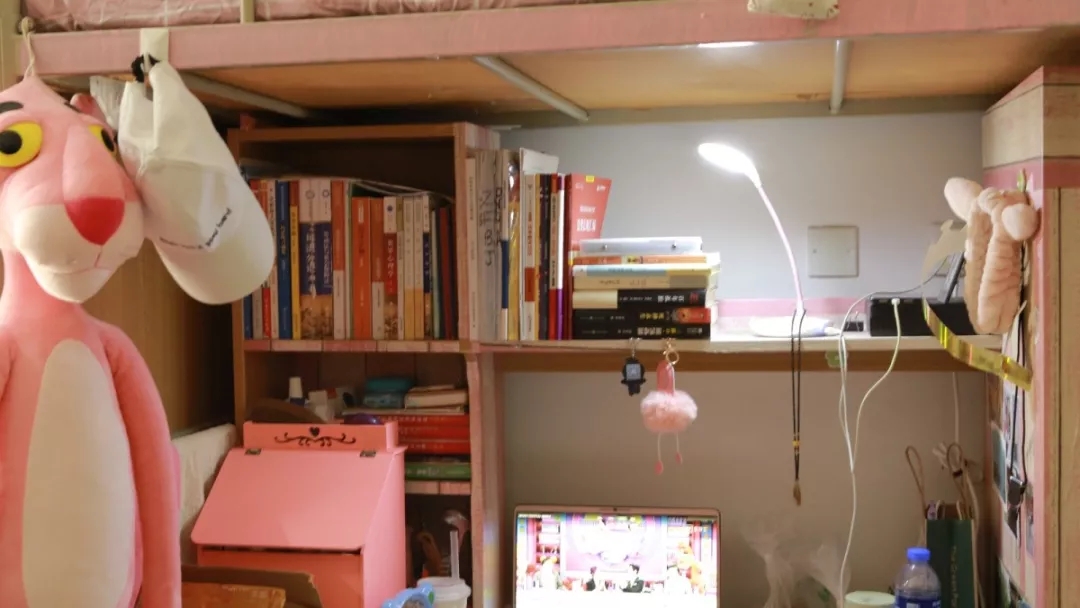 大一的同学在自己的宿舍虽只度过两个月的时光,但在男生宿舍里,他们用心栽培的小花却已成长了许多,而培养植物不仅能够美化环境,还可以陶冶情操,使其宿舍具有静谧美好的文化。而同样,附着在女生宿舍墙面上的炫酷欧美风的海报,体现了该宿舍时尚新颖的宿舍文化。