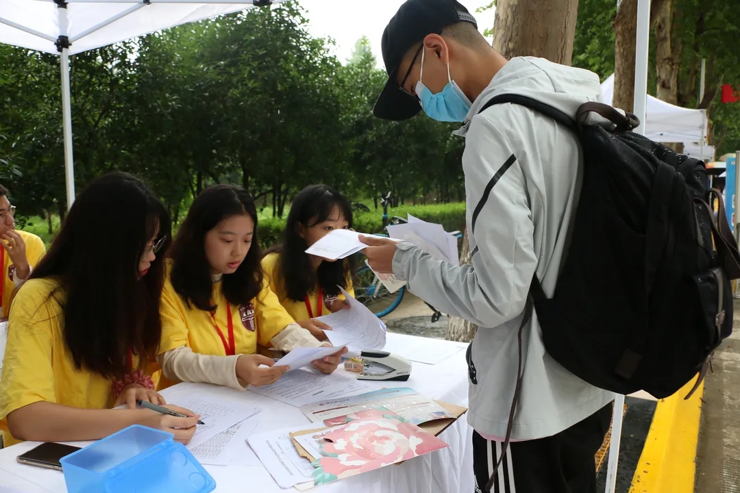 8点左右,新生陆续来到学院摊位进行开学报道。在摊位值班的学长学姐们为新生们发放校园卡等物品,严格审核新生们的返校申请,提醒新生们严格遵守校园防疫措施;负责后勤保障的学长学姐们悉心为新生们指引宿舍、体检场地等方向,并为他们答疑解惑,介绍校园的各处设施,让新生们更加了解校园。