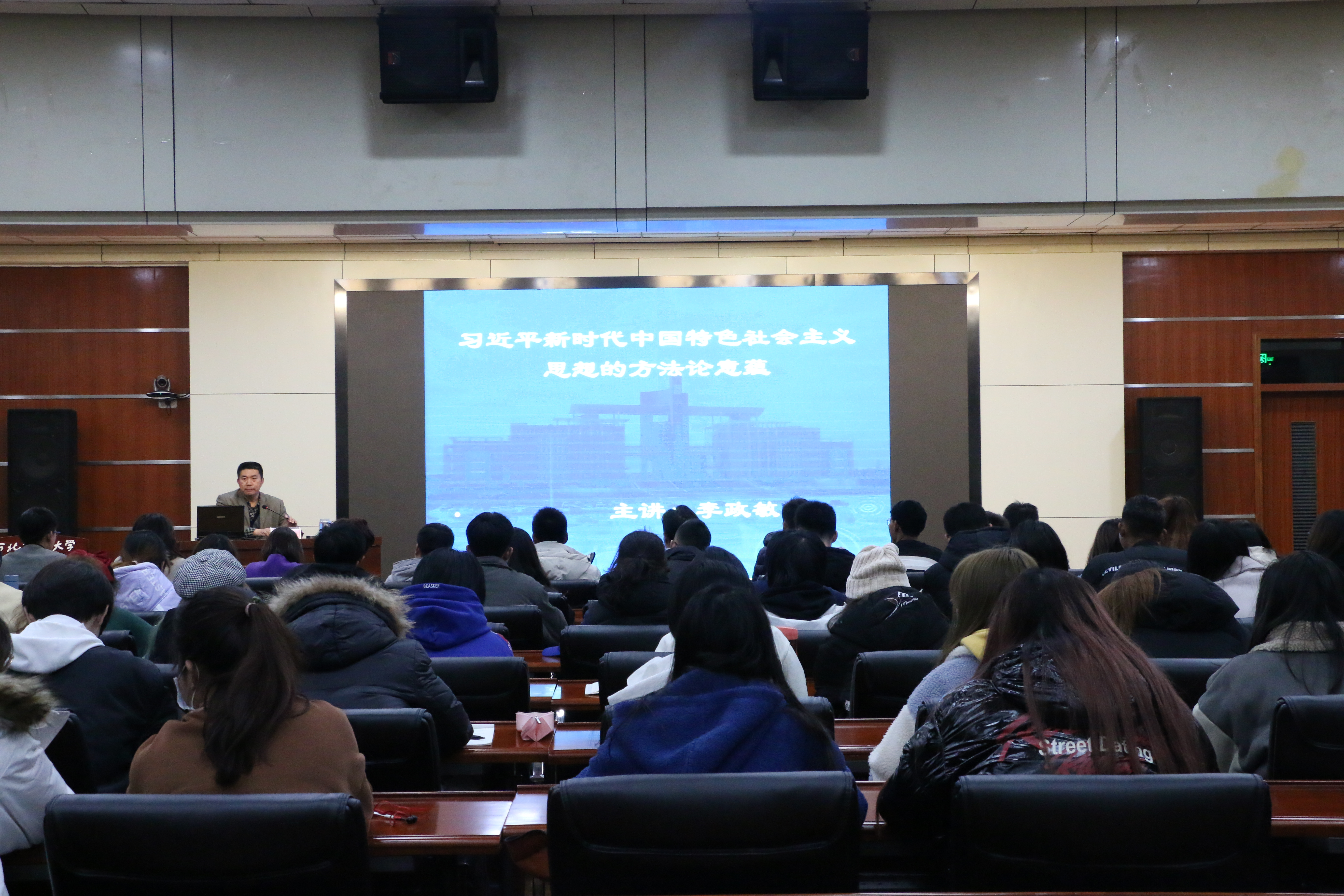 党委书记李政敏全面阐述了马克思主义方法论,详细介绍了马克思主义方法论中的重要概念及深远意义。他认为,马克思主义方法论的最终目的是指导实践,学习马克思主义方法论要紧贴工作实际,学生干部要将重要思想理论付诸于实践,以服务于学院和学生发展为重心开展学生工作。结合习近平新时代中国特色社会主义思想中的重要论述和理论知识,他分别强调了改革发展、人民群众、历史唯物主义的重要性。他希望各位学生骨干学习领会其中的根本观点和思维方法,运用好辩证法,培育好底线思维,在实践中不断探索创新,高效有序地开展好各项工作。