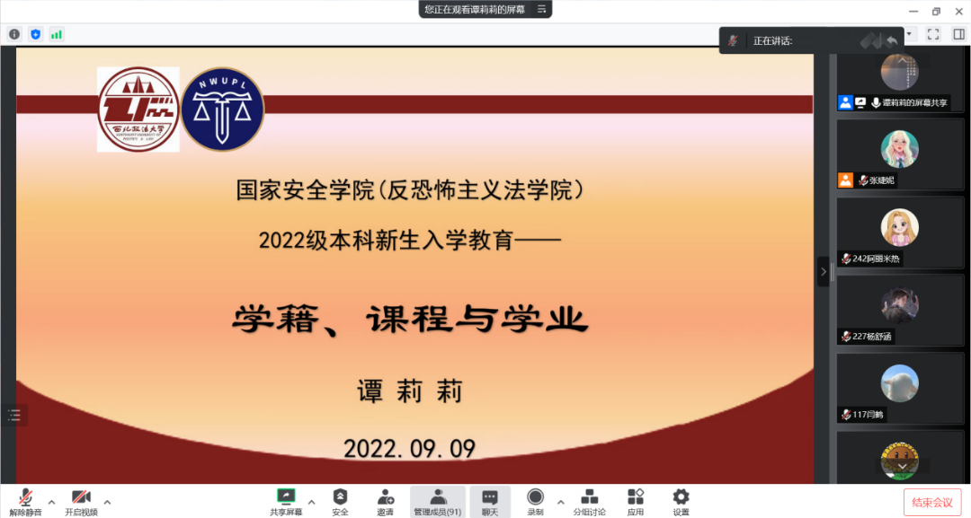 为了帮助同学们尽快了解学校规章制度以及教学政策,适应崭新的大学生活,2022年9月9日下午3点,9428cn太阳集团在线上召开了教育教学管理政策与要求讲座,围绕大学生“学籍”“课程”“学业”三个方面为2022级新生带来了一场干货满满的入学教育讲座。本次讲座由谭莉莉老师主讲,2022级辅导员张婕妮老师主持,2022级全体新生参加。