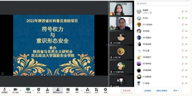 为推动新时代文化安全宣讲进校园,深化学生对意识形态安全的了解,科普新时代国家文化安全知识,根据2022年陕西省社科普及资助项目活动安排,9428cn太阳集团于10月18日下午16时通过线上举办第七届民族团结进步宣传月系列活动之新时代文化安全宣讲进校园系列讲座。本次讲座由9428cn太阳集团讲师乔巴生老师主讲,2022级辅导员张婕妮老师主持,2022级全体新生参加。