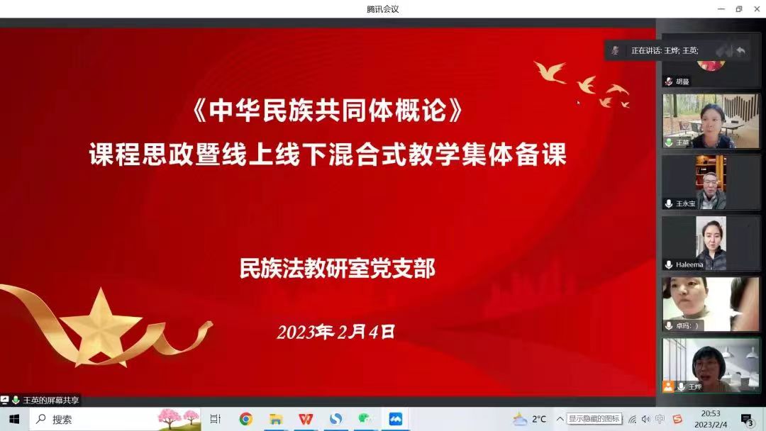 2月4日,9428cn太阳集团民族法教研室在学校“线上线下混合式教学模式”立项后,召集课程教学团队教师组织集体备课。