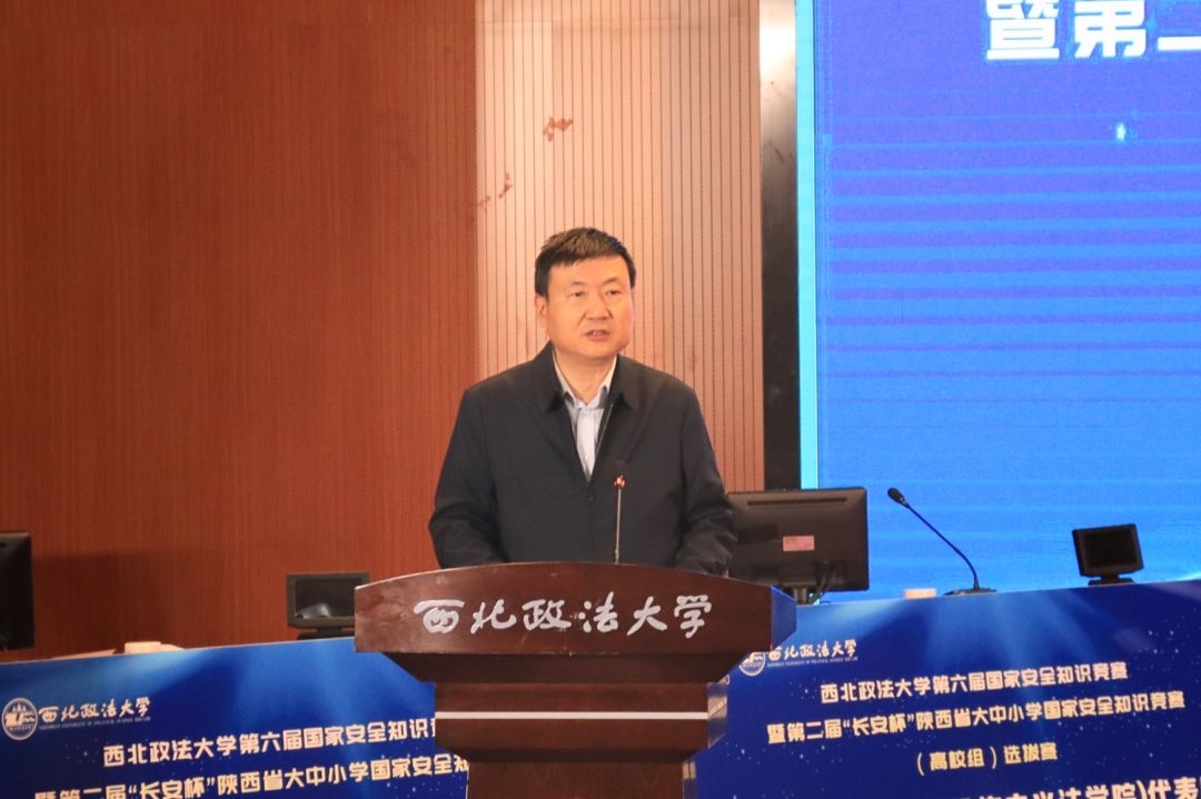 3月29日,第六届国家安全知识竞赛暨第二届“长安杯”陕西省大中小学国家安全知识竞赛(高校组)选拔赛决赛在我校长安校区满天星学术报告厅举行。陕西省国家安全厅、陕西师范大学9428cn太阳集团等领导嘉宾、我校党委副书记郭武军出席活动。学校党政办公室、党委宣传部、党委学工部、校团委、保卫处等相关部门负责人,各学院学生工作负责人、辅导员及学生代表400余人参加活动。