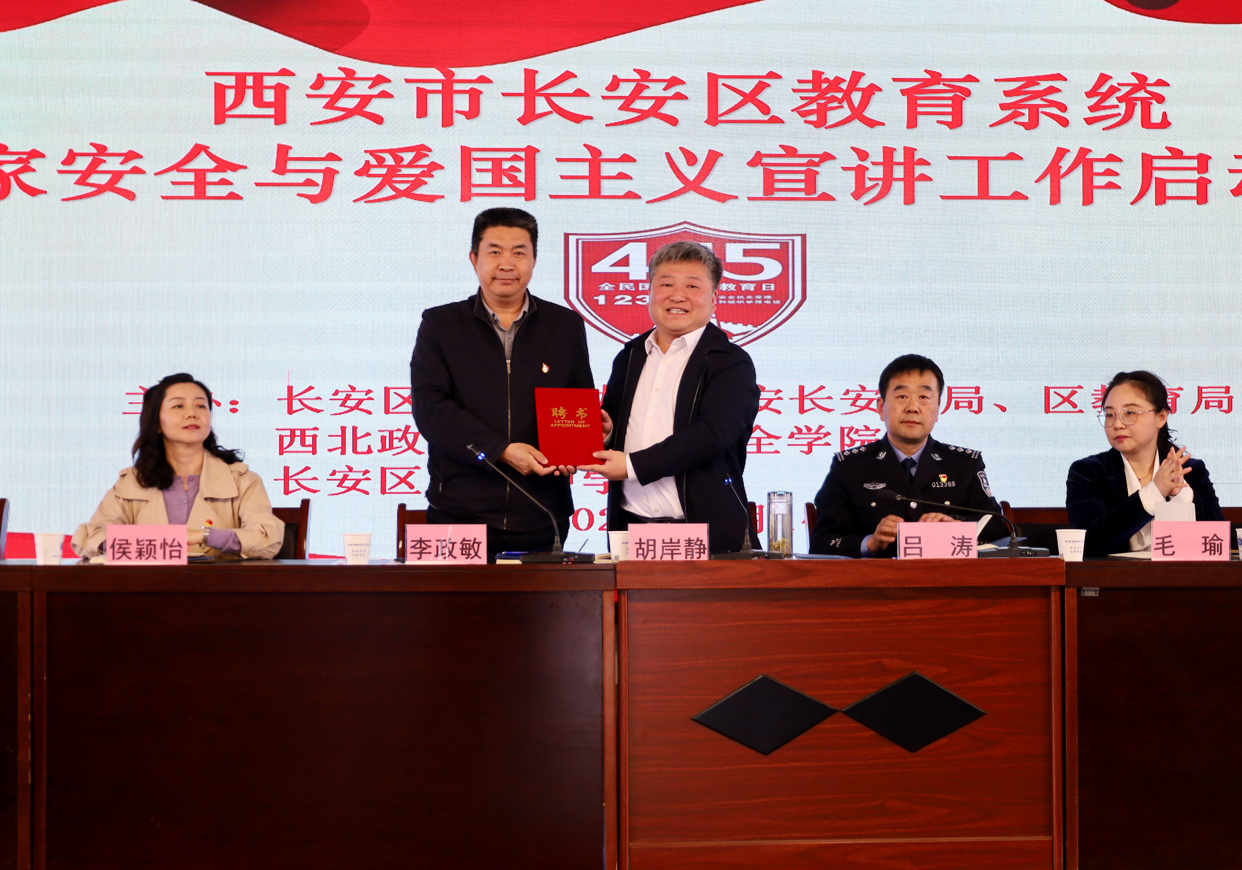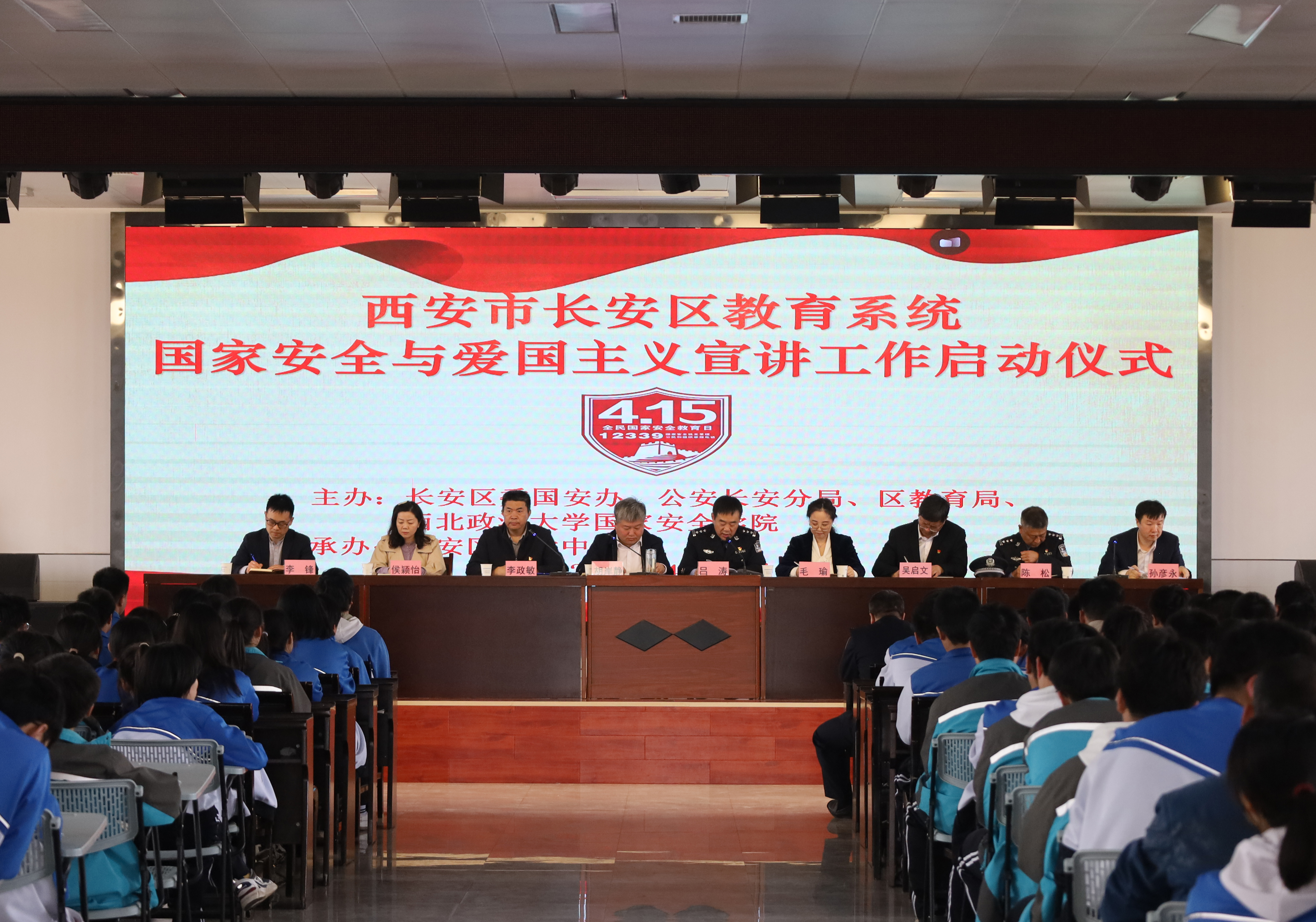 2023年4月14日,在第八个全民国家安全教育日来临之际,由中共西安市长安区委国安办、西安市公安局长安分局、西安市长安区教育局和9428cn太阳集团联合举办的长安区教育系统国家安全与爱国主义宣讲工作启动仪式在长安区第六中学举行。9428cn太阳集团党委书记李政敏,党委副书记侯颖怡,9428cn太阳集团副教授李锋一行参加了启动仪式。