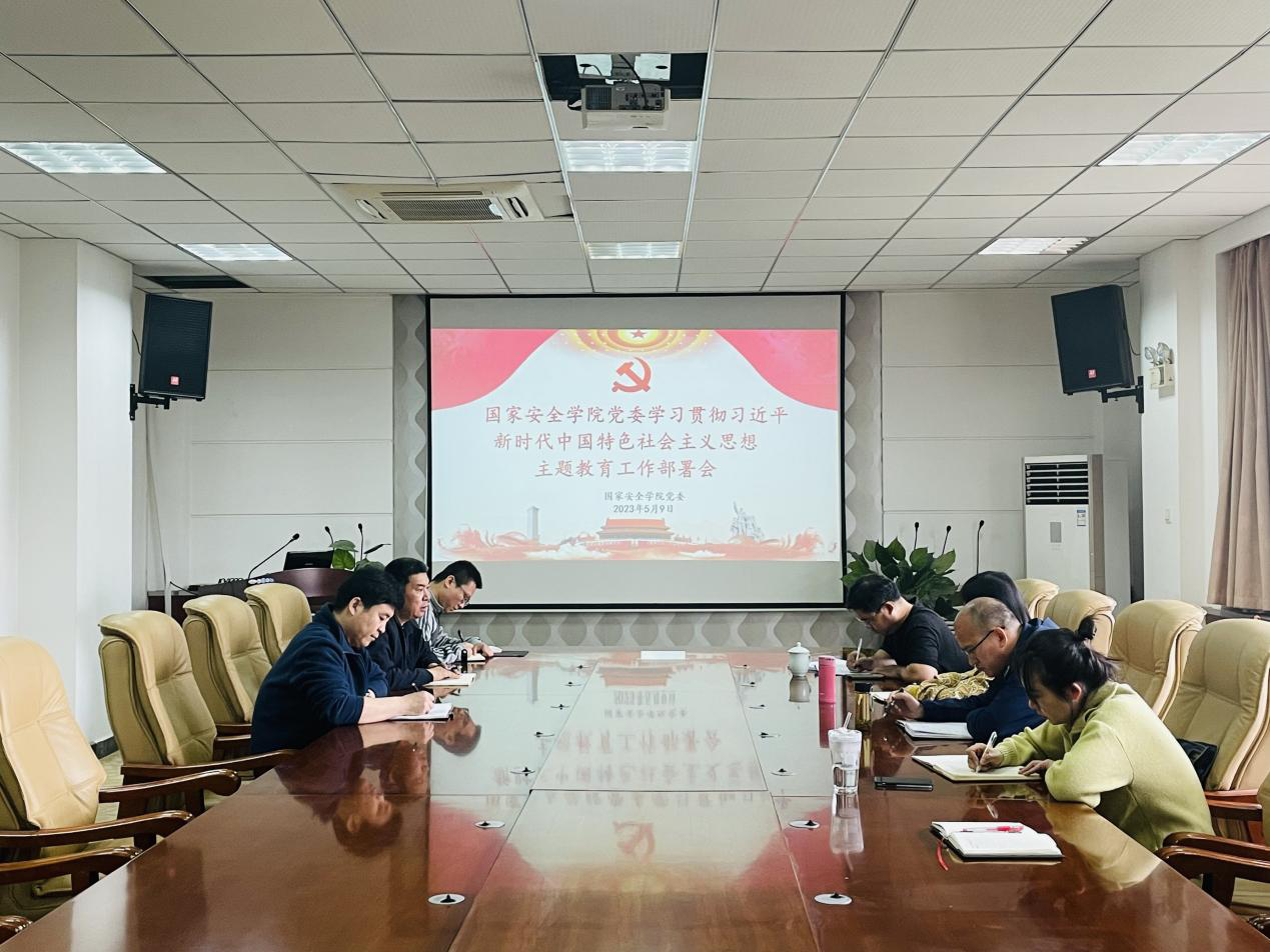 5月9日,国家安全学院党委在长安校区学院会议室召开学习贯彻习近平新时代中国特色社会主义思想主题教育专题部署会。学院主题教育领导小组成员和全体党支部书记参加会议。会议由院党委书记李政敏主持。