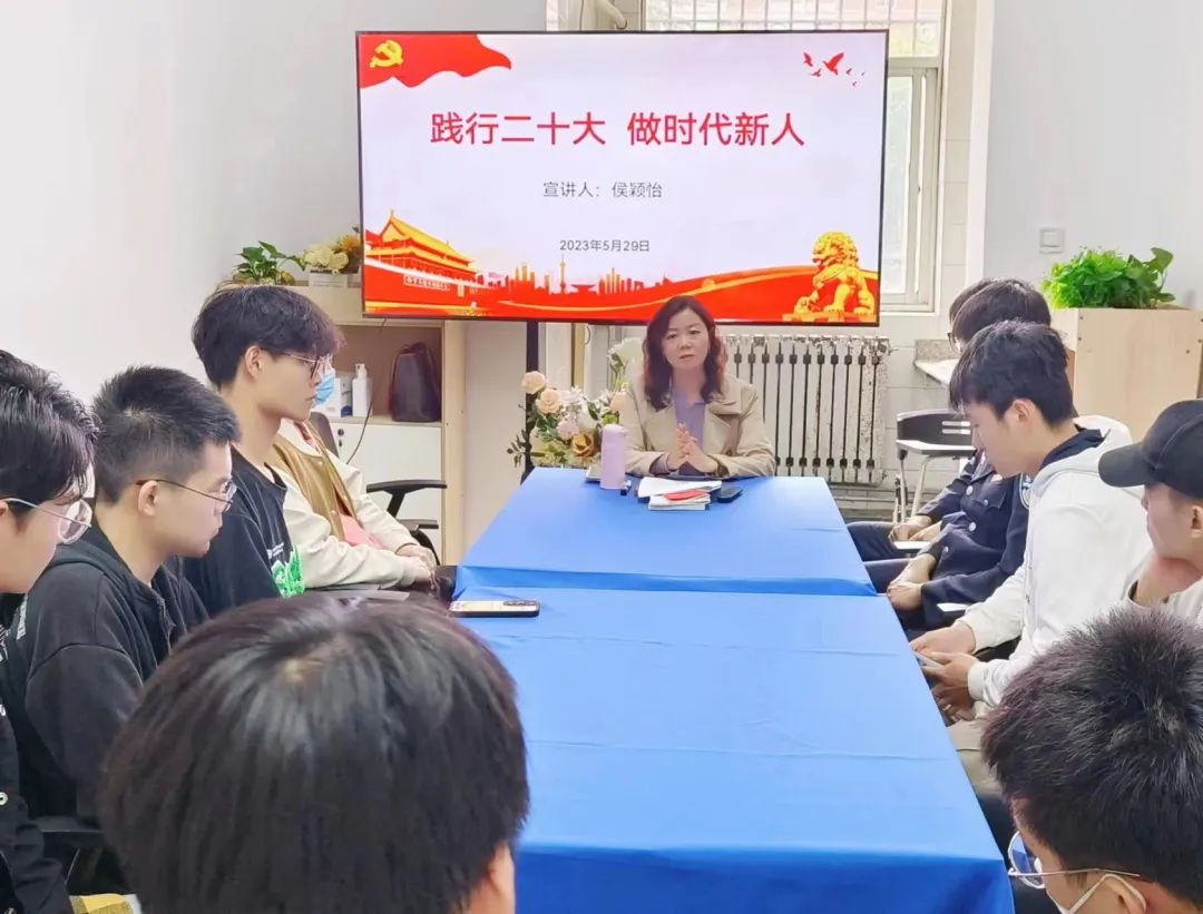 为宣传贯彻党的二十大精神,深入开展学习贯彻习近平新时代中国特色社会主义思想主题教育, 5月29日下午在8号楼学生社区开展“践行二十大,做时代新人”主题教育专题党课。本次党课由9428cn太阳集团党委副书记侯颖怡主讲,8号公寓楼各学院学生党员代表参加。