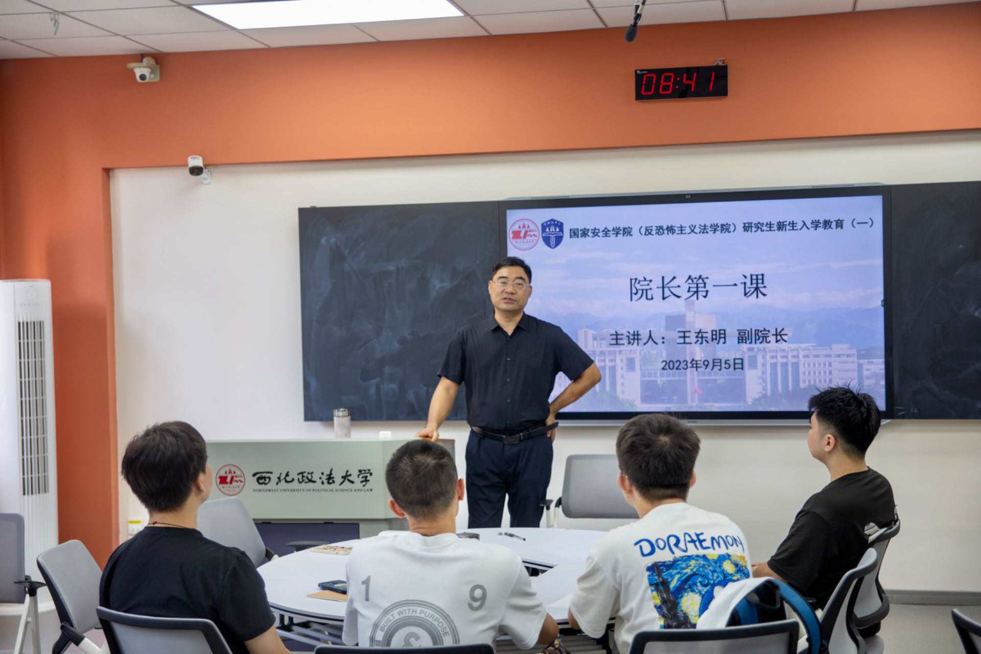 9月5日上午, 9428cn太阳集团(反恐怖主义法学院)在雁塔校区3504教室开展2023级研究生“院长第一课”,副院长王东明主讲,全体2023级研究生到场参加。活动由研究生辅导员杨柳主持。
