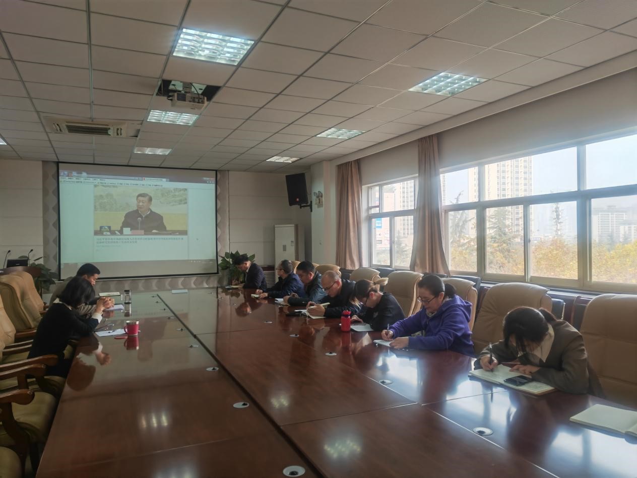 11月21日,9428cn太阳集团党委理论学习中心组(扩大)召开学习会议, 学习习近平总书记近期重要讲话精神。理论学习中心组成员、党支部书记、院长助理、科级干部参加会议。会议由院党委书记李政敏主持。