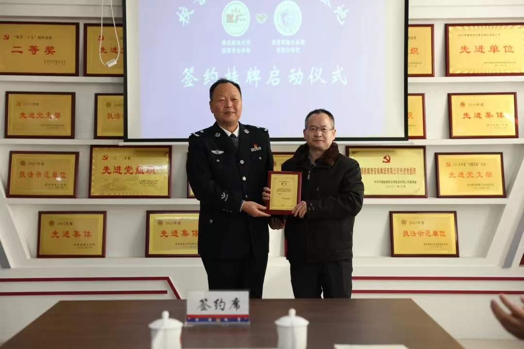 学院与会人员参观了西安北站派出所,了解了派出所枫桥经验及暖心会客厅等基础建设情况和经验做法。王军胜向舒洪水教授、王林副教授、段阳伟副教授、张波副教授四位老师颁发研究员聘书。双方签订校警联合科研实训合作框架协议,并在西安北站派出所挂牌成立“校警联合科研实训基地”。