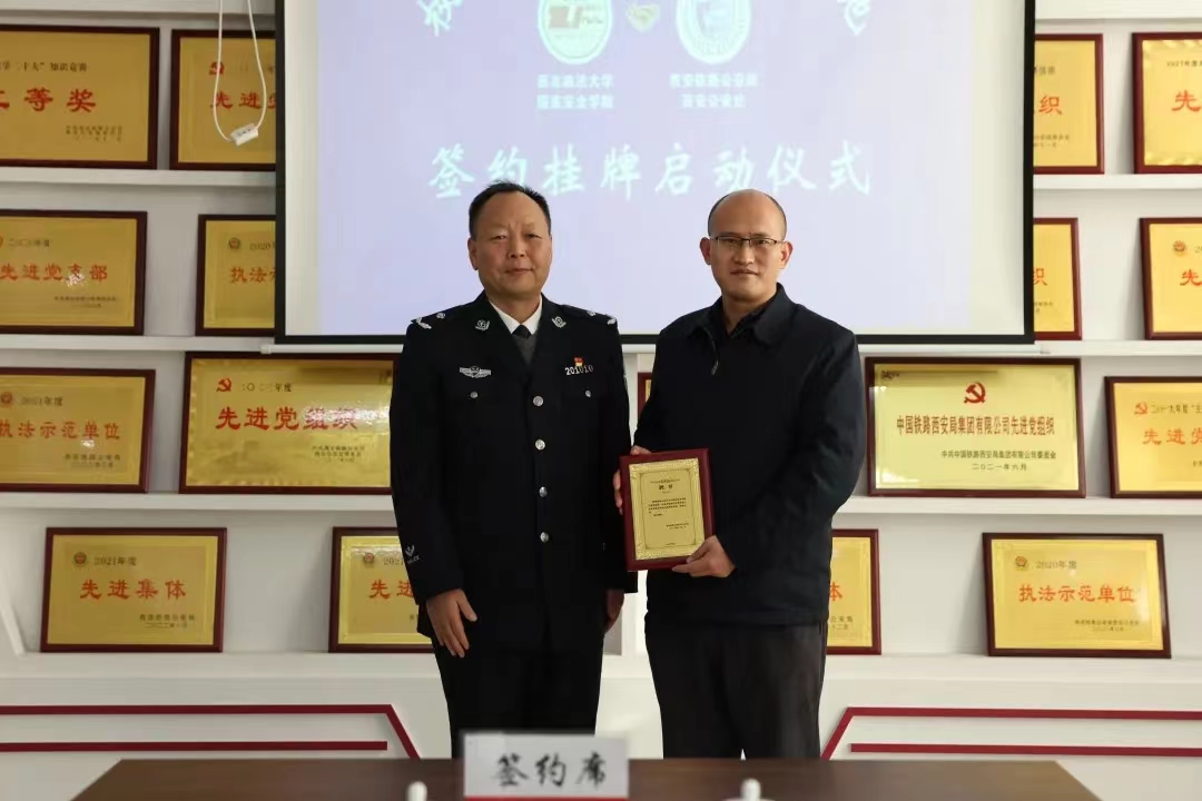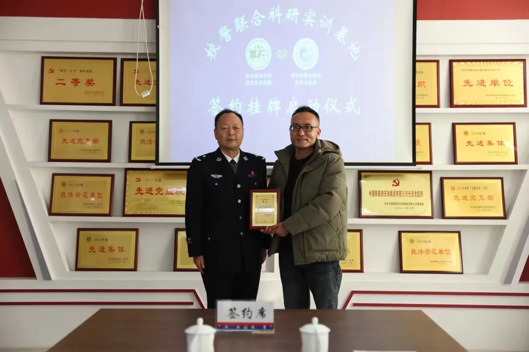 1月2日下午,9428cn太阳集团党委书记李政敏,党委副书记、院长舒洪水,党委副书记刘卫波及9428cn太阳集团教师一行赴西安铁路公安局西安公安处,共同举办“校警联合科研实训基地”揭幕挂牌仪式。西安铁路公安局西安公安处党委书记、处长田野,党委委员、纪委书记王军胜,党委委员、副处长王海涛及相关部门负责人参加仪式。