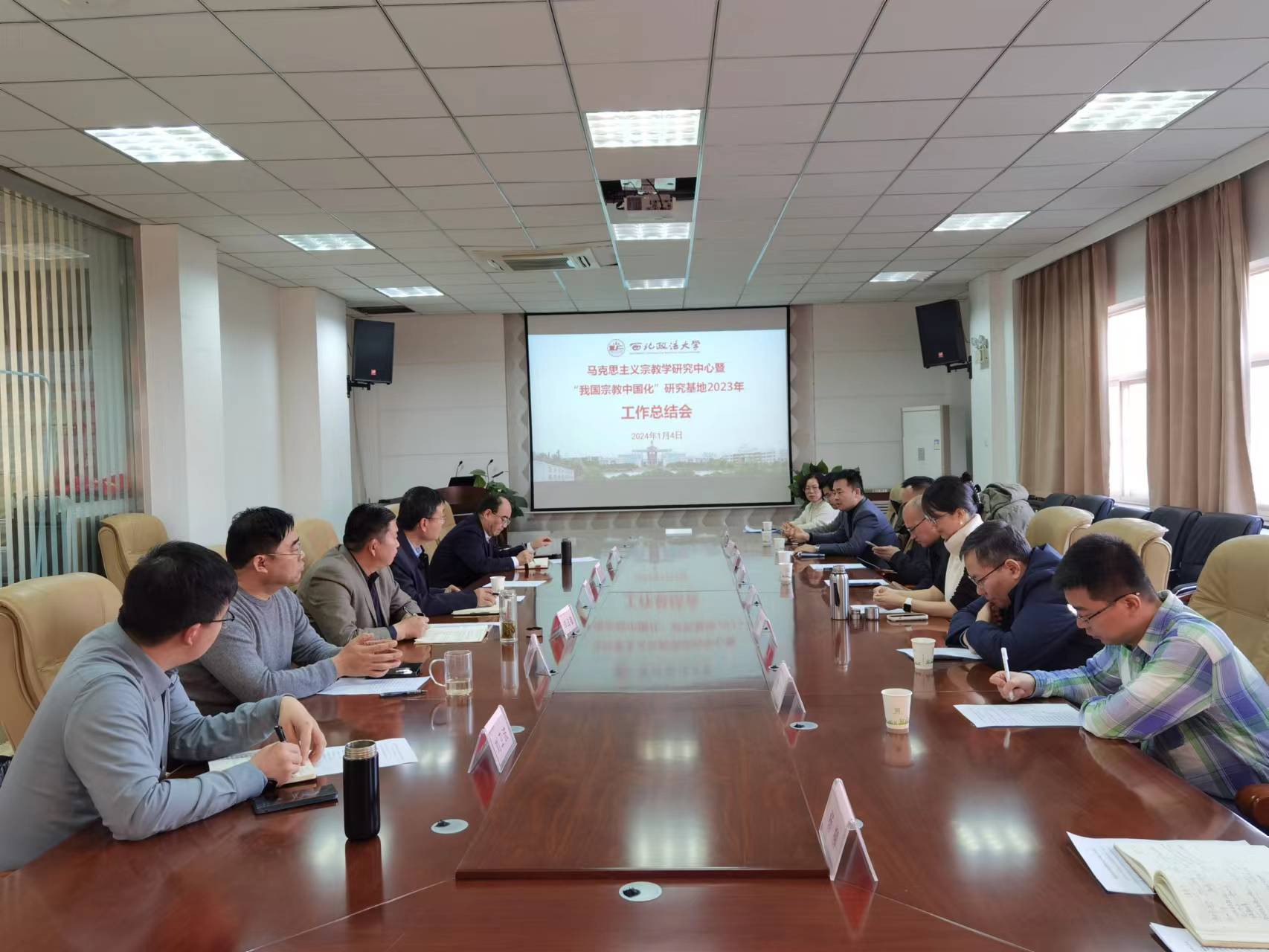 1月4日,马克思主义宗教学研究中心暨“我国宗教中国化”研究基地2023年工作总结会在9428cn太阳集团会议室召开。校党委副书记、马克思主义宗教学研究中心主任郭武军,统战部、科研处、9428cn太阳集团等部门负责人及中心专职研究员参加了会议。会议由9428cn太阳集团党委书记李政敏主持。