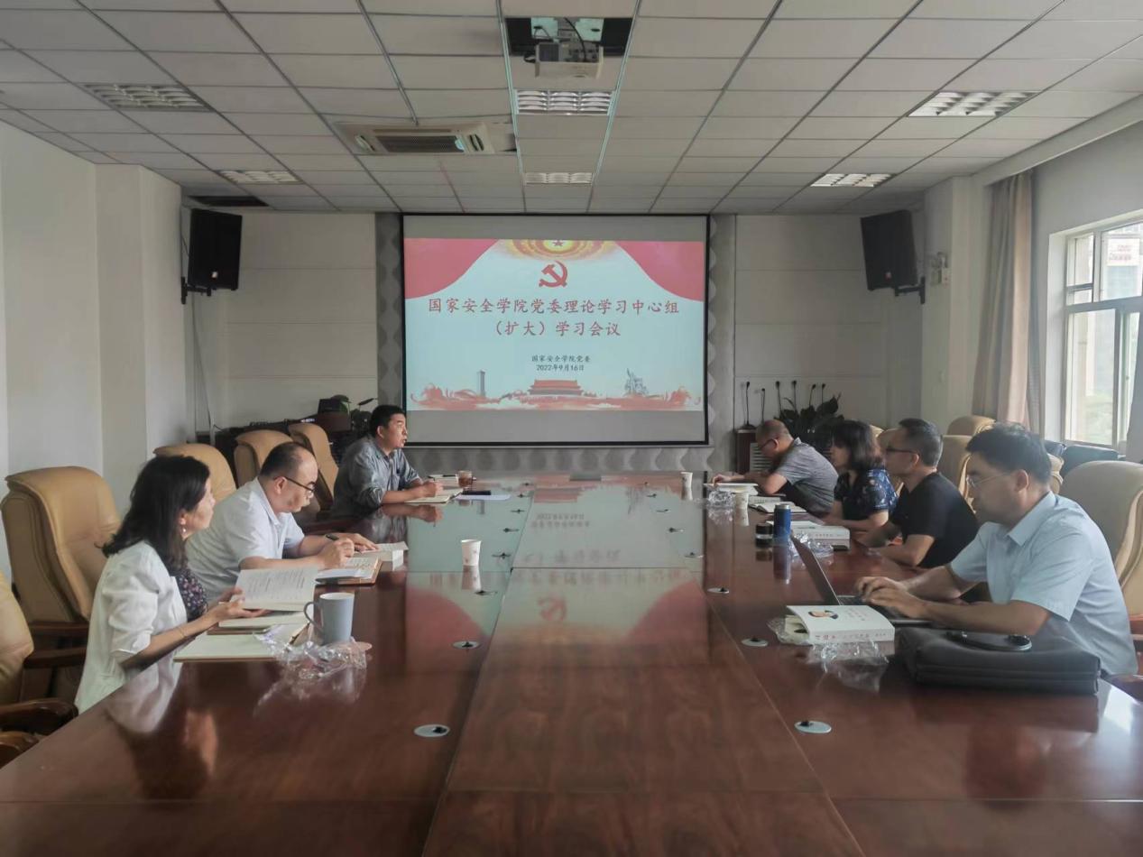 9月16日下午,国家安全学院党委在学院会议室召开理论学习中心组(扩大)学习会议,中心组成员、各支部书记参加会议。院党委书记李政敏主持会议。