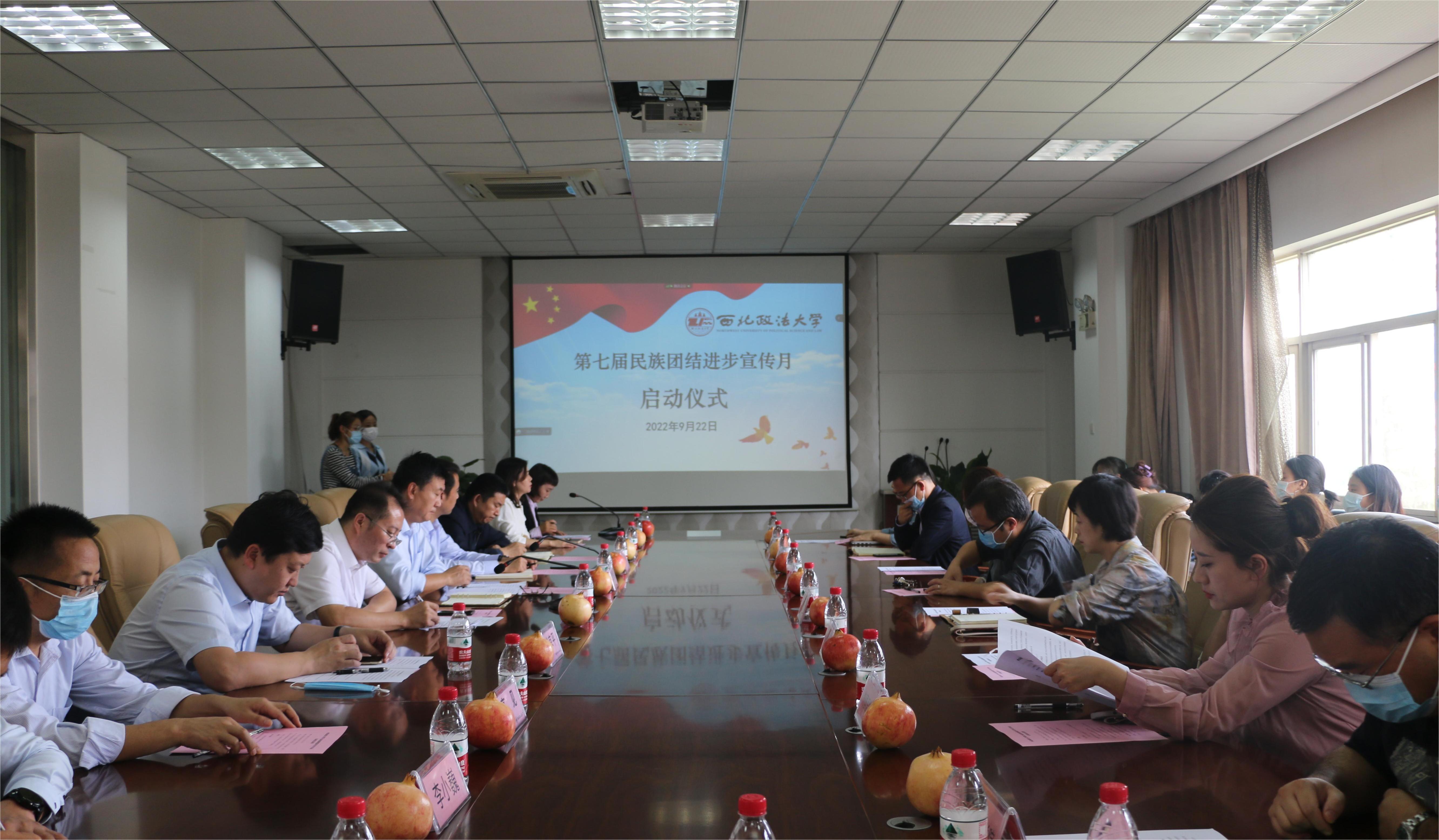 9月22日,由校党委统战部、宣传部、学工部、校团委和9428cn太阳集团联合举办的太阳集团“第七届民族团结进步宣传月”活动启动仪式在长安校区举行。校党委副书记郭武军,相关部门负责同志,各学院主管学生工作副书记以及9428cn太阳集团负责同志、少数民族师生代表参加会议。会议由9428cn太阳集团党委副书记侯颖怡主持。