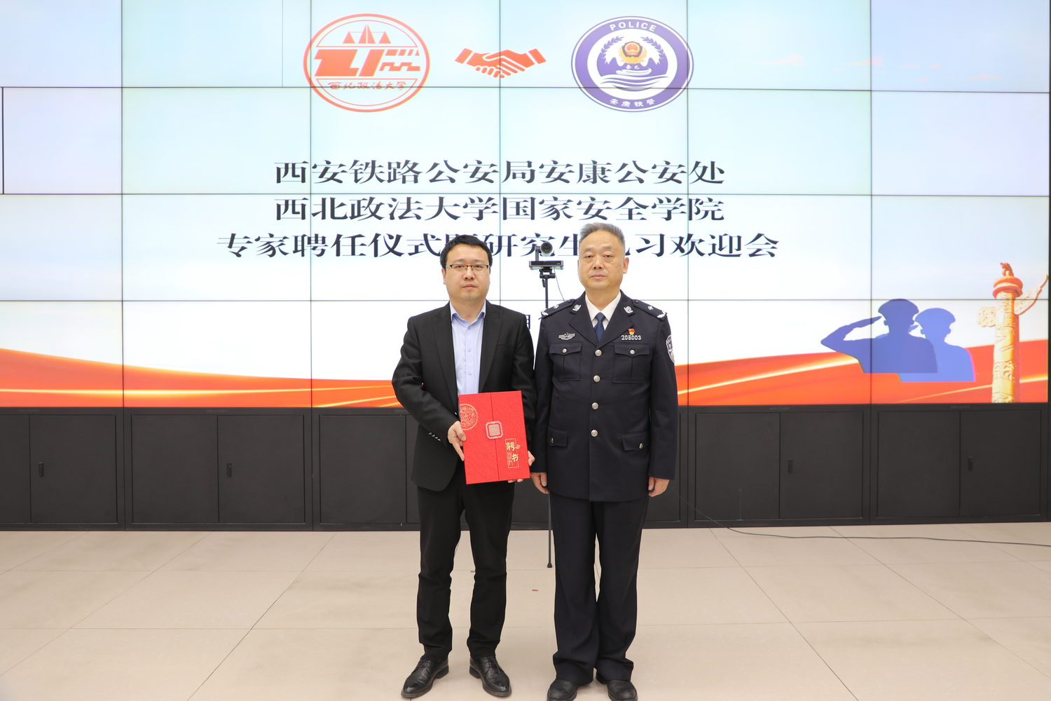 启动仪式上,安康公安处对我院师生的到来表示热烈欢迎,双方就深化校警合作、提升人才培养质量进行深入交流。薛超主任在欢迎辞中介绍了公安处工作的概况,夏波副处长为段阳伟副院长颁发安康公安处专家聘书。段阳伟副院长对安康公安处的支持表示感谢,详细介绍了本次见习的任务与目标,强调要把课堂所学与铁路公安实战紧密结合,鼓励研究生珍惜实践机会,将专业知识运用到实际工作中,锤炼过硬本领。