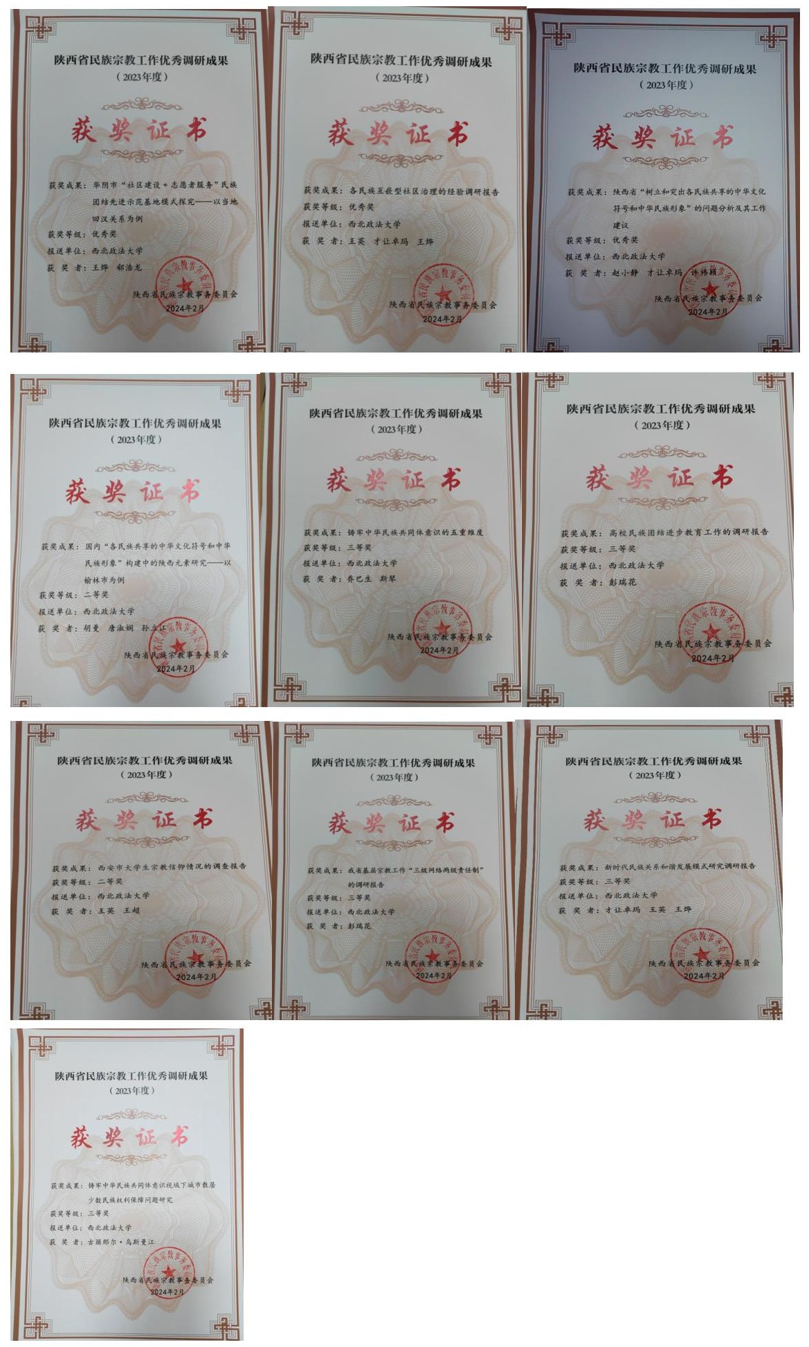 近日,陕西省民族宗教事务委员会公布了2023年度全省民族宗教工作优秀调研成果获奖名单,我院在2023年全省民族宗教工作调研成果表彰中取得突出成绩。其中二等奖2项、三等奖5项,优秀奖3项。我院彭瑞花、胡曼、王英、才让卓玛、古丽那尔·乌斯曼江、唐淑娴、乔巴生、王烨、斯琴、孙立江等教师围绕主题,广泛调查,深入研究,为全省民族宗教工作提供了智力支持,为学校赢得了荣誉。