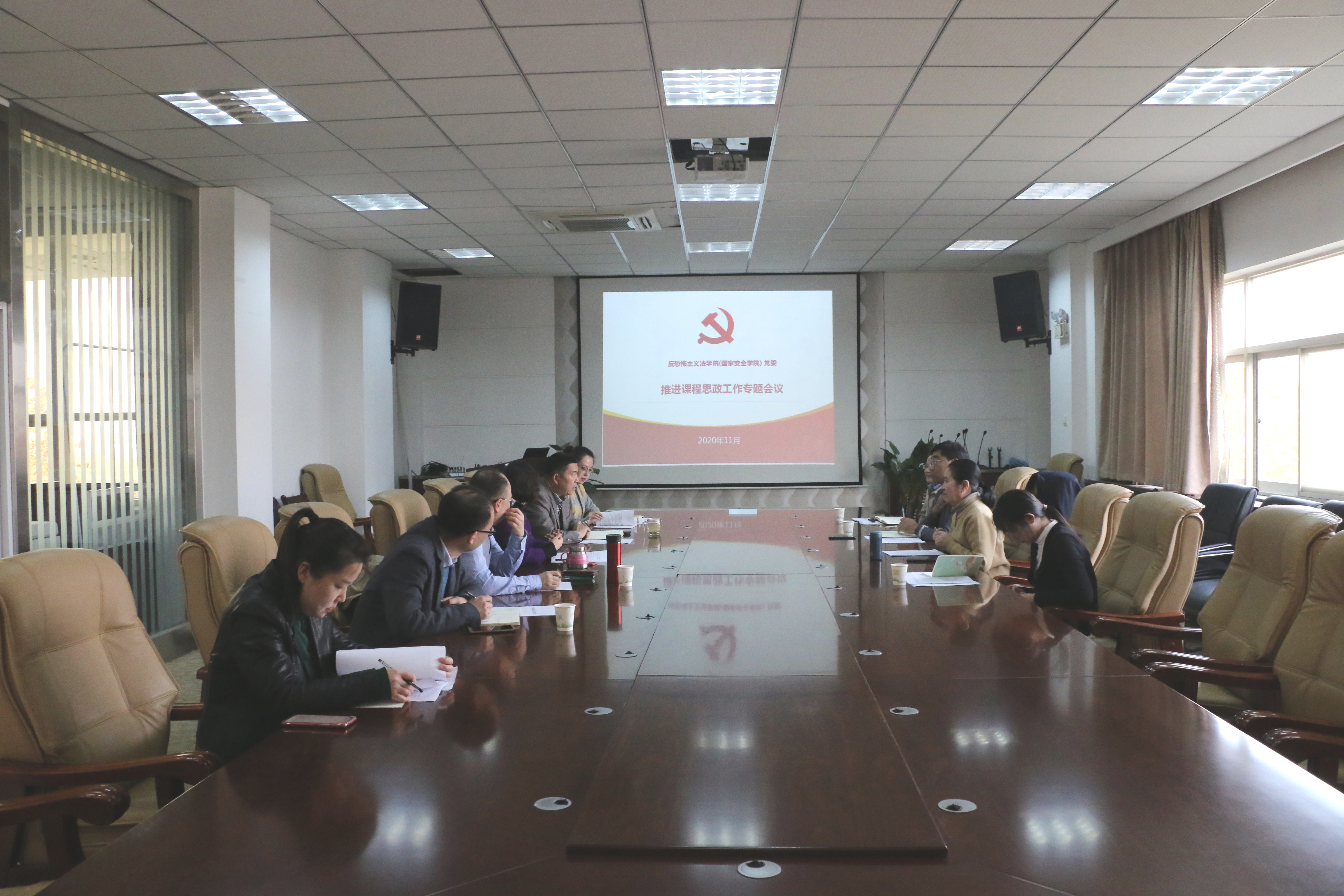 11月11日下午,反恐怖主义法学院在学院会议室召开课程思政工作专题推进会议。学院领导班子、各支部书记、教师代表参加,会议由学院党委书记李政敏主持。