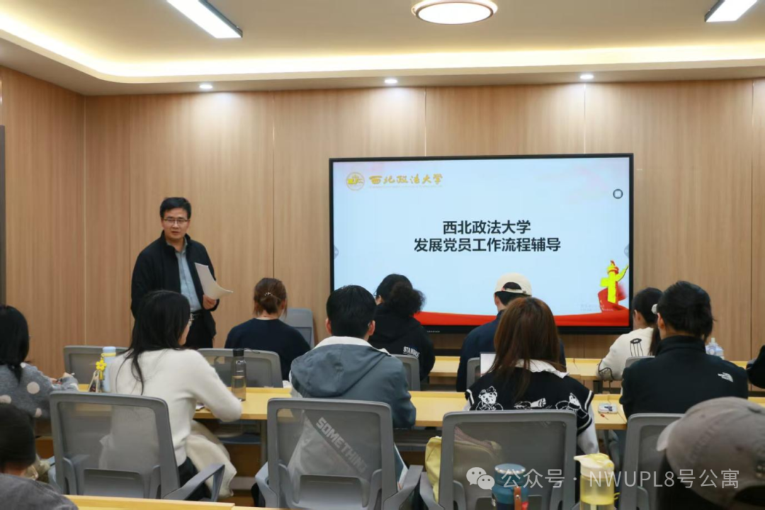 会上,刘卫波以《中国共产党发展党员工作细则》为根本依据,围绕“申请入党”“入党积极分子的确定和培养”“发展对象的确定和考察”“预备党员的接收”“预备党员的教育、考察和转正”这五个关键环节展开了系统阐释。他结合学院党建工作的实际情况和典型案例,重点讲解了“两表一书”及思想汇报等材料的撰写规范与政治审查要求,强调内容必须真实深刻、杜绝虚构,格式务必严谨规范、符合标准,坚决杜绝敷衍塞责和形式主义。