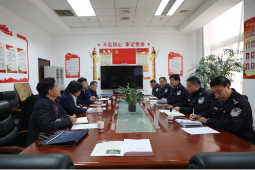王东明副院长介绍了我校的历史沿革以及反恐怖主义法学院成立以来在教学科研方面取得的成就。学院将充分发挥学校反恐学科的优势,与公安实务部门在理论研究、人才培养、横向课题等方面加强合作,建立常态化对接联络机制。穆兴天教授介绍了学校引进军队高层次军转干部的做法,希望通过充分发挥军转干部的专业技术特长,加强校局合作,探索以“文”为主逐步向“文”“工”结合的转变之路。