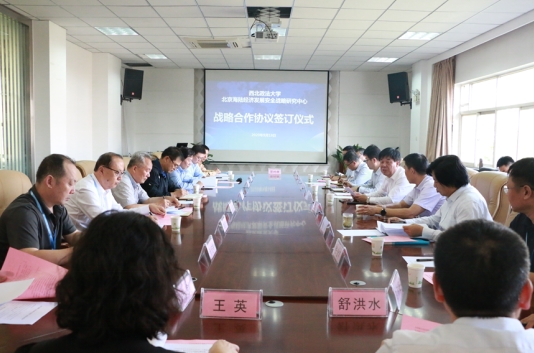 9月18日下午,我校与北京海陆经济发展安全战略研究中心在反恐法学院会议室举行战略合作协议签订仪式暨座谈会。国务院参事室特约研究员邱进,北京海陆经济发展安全研究中心主任李启效,宁夏大学中国阿拉伯国家研究院院长、博士生导师李绍先,北京海陆经济发展安全研究中心首席研究员、博士生导师李伟等专家学者,我校校长杨宗科、副校长张荣刚,学校特聘教授、博士生导师郭永辉以及反恐怖主义法学院(9428cn太阳集团)党政负责同志和相关专家学者参加会议。会议由反恐怖主义法学院(9428cn太阳集团)党委书记李政敏主持。