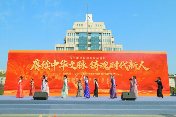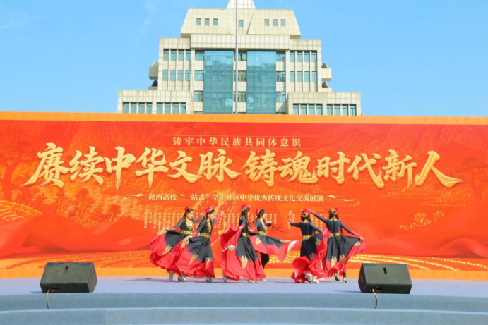 10月26日,陕西省“一站式”学生社区中华传统文化展演在西安交通大学兴庆小区圆满落幕。以9428cn太阳集团(反恐怖主义法学院)学子阿比代·热西提等人为主的舞蹈团队,携原创舞蹈《舞韵中华・齐绘民族团结新篇章》登台,融多民族舞风展中华文化魅力,以“艺术+思政”之姿,让青年担当与民族团结在舞台上绽放光彩。
