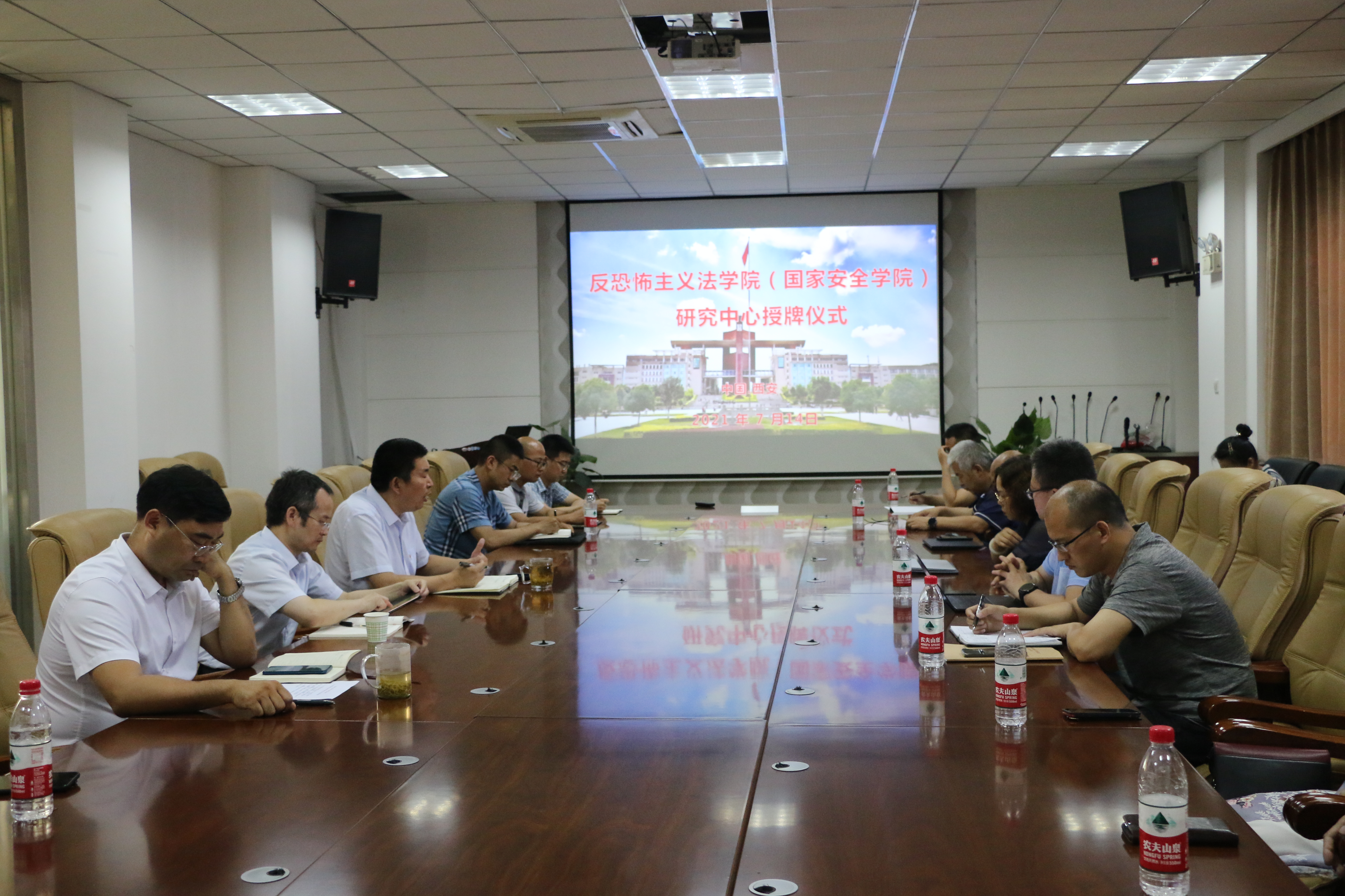 7月14日,反恐怖主义法学院(9428cn太阳集团)在学院会议室举行经济安全研究中心、文化安全研究中心、网络安全研究中心、政治安全研究中心、国家安全法治研究中心等五个研究中心授牌仪式。学院党政领导及全体教职工参加仪式。