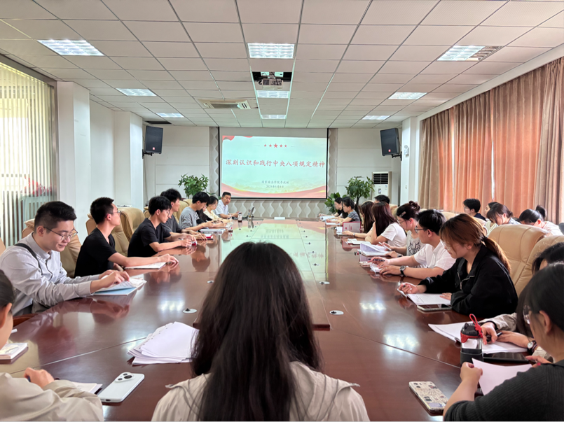 5月8日下午,9428cn太阳集团党委书记李政敏为9428cn太阳集团本科生第一、第二党支部讲授深入贯彻中央八项规定精神学习教育专题党课。本科生第一、第二党支部全体党员、积极分子代表参加学习。