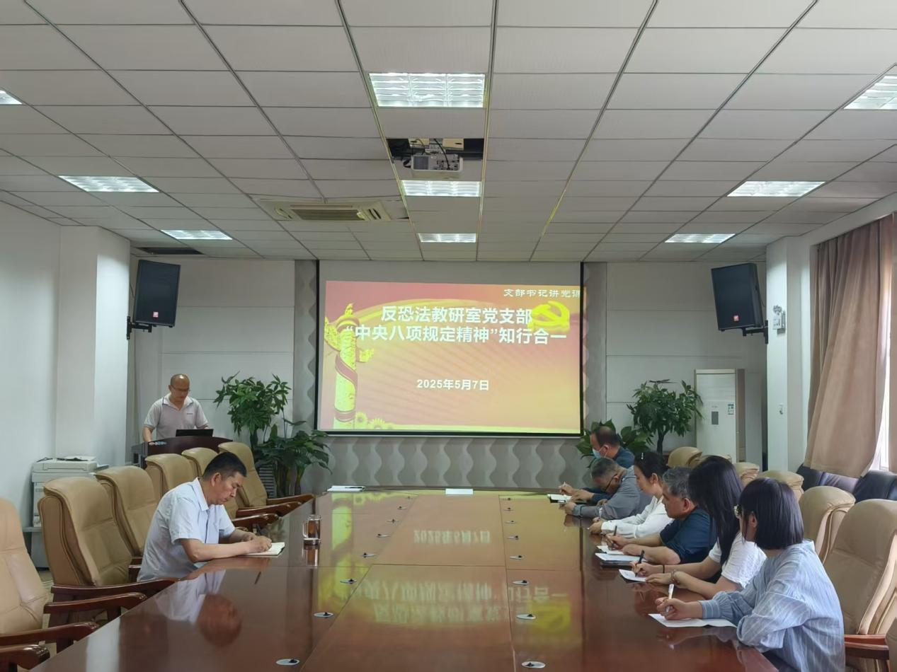 2025年5月7日,反恐怖主义法教研室党支部组织集体学习暨“‘中央八项规定精神’知行合一”的支部书记讲党课活动,院党委李政敏书记和党支部党员同志参加会议。