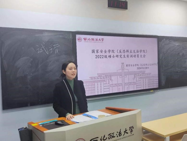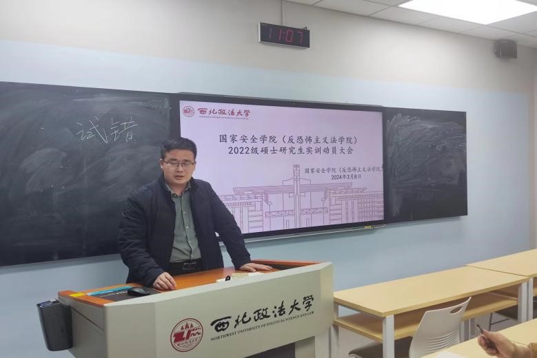 3月8日上午,9428cn太阳集团(反恐怖主义法学院)在雁塔校区3号教学楼3603教室举办了2022级硕士研究生实训动员大会。学院党委副书记、副院长刘卫波,教务秘书秦哲及2022级全体硕士研究生参加动员会。会议由学院副院长王东明主持。